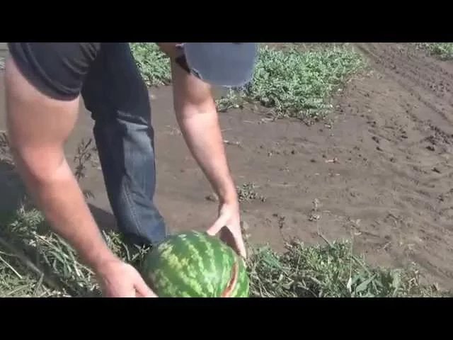 Новый ранний гибрид. Очень сильное растение дает крупные, овальные плоды средней массой 10-12 кг, которые хорошо прикрываются листвой. При хороших условиях легко дорастают до 14-16 кг. Плоды гибрида имеют исключительно привлекательный цвет и не желтеют при дозревании! Мякоть привлекательного насыщенного красного цвета, сочная и плотная, с высоким содержанием сахаров (11-13 brix) и небольшим количеством мелких семечек. Очень длинный период плодоношения.