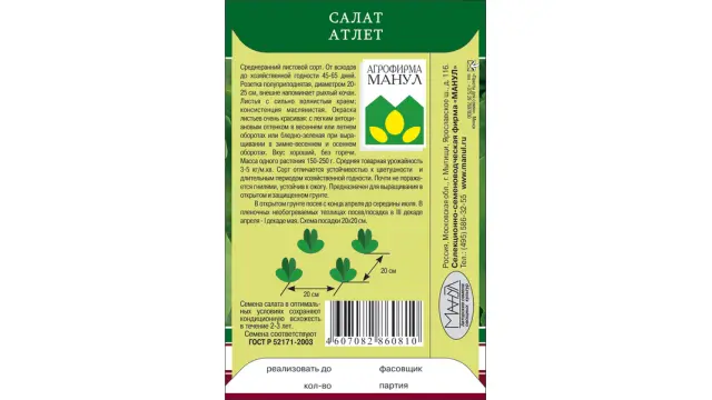 Среднеранний листовой сорт. От всходов до хозяйственной годности 45-65 дней. Розетка полуприподнятая, диаметром 20-25 см, внешне напоминает рыхлый кочан. Окраска листьев бледно-зеленая при выращивании в зимне-весеннем и осеннем оборотах, или с легким антоциановым оттенком в весеннем или летнем оборотах. Листья с сильно волнистым краем; консистенция маслянистая. Вкус хороший, без горечи. Масса одного растения 150-250 г. Средняя товарная урожайность 3-5 кг/кв. м. Сорт отличается устойчивостью к цветушности и длительным периодом хозяйственной годности. Почти не поражается гнилями, устойчив к ожогу.