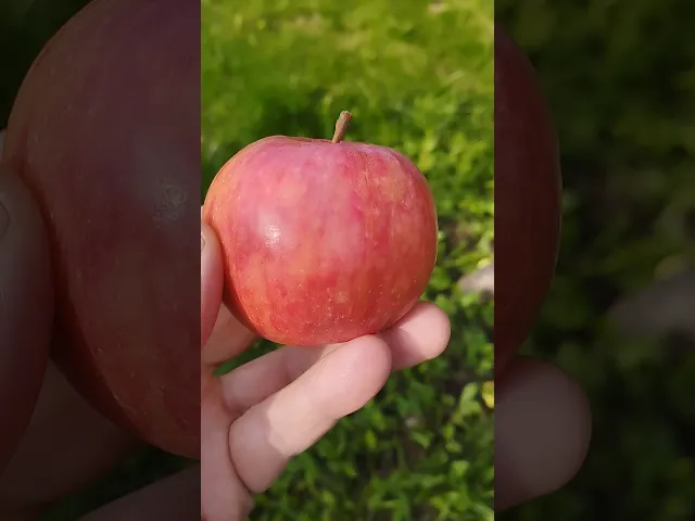 Плоды средние (85-145 г), одномерные, правильной формы, округло-овальные, поверхность гладкая. Кожица нежная, гладкая, со слабым восковым налетом. Окраска в состоянии съемной зрелости зеленоватая, с размытым полосатым розовым румянцем на меньшей части плода, в состоянии потребительской зрелости — зеленовато-желтая, покровная — полосатый пурпурный румянец на большей части плода. Подкожные точки малочисленные, светло-зеленые, слабо заметные. Плодоножка средней длины и толщины, косопоставленная. Воронка остроконическая, глубокая, узкая, без оржавленности. Чашечка неопадающая, закрытая. Блюдце мелкое, слабобороздчатое. Сердечко среднее, репчатое. Семенные камеры полуоткрытые, большие, перепончатые. Подчашечная трубка короткая, треугольная. Семена средние, яйцевидные, коричневые.