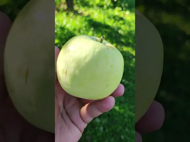 Плоды вышесреднего размера (130-180 г), правильной формы, одномерные, округлые. Кожица гладкая с нежной оржавленностью у плодоножки. Подкожные точки малозаметные. Основная окраска — беловато-светло-зеленая со слабым размытым румянцем. Воронка большая, средней ширины; блюдце большое, широкое, гладкое, чашечка закрытая, подчашечная трубка воронковидная.