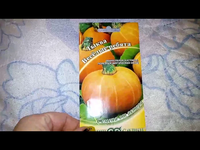 Тыква сорта "Весёлые ребята" представляет собой раннеспелый крупноплодный сорт с периодом созревания около 80-86 дней. Растение кустовое, очень компактное, с короткой главной плетью, что облегчает уход и посадку. Плоды имеют плоскоокруглую форму, гладкую поверхность и ярко-оранжевый цвет. Масса каждого плода составляет от 1,8 до 2,5 кг, а кора тонкая и гибкая, что делает их удобными для обработки и приготовления.