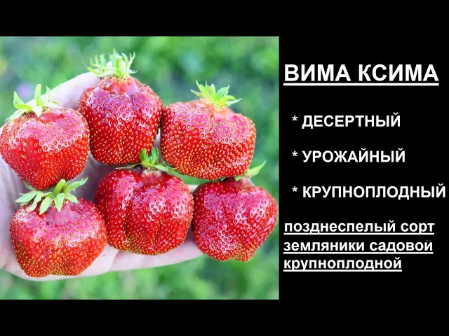 Сорт клубники Вима Ксима представляет собой среднепоздний неремонтантный сорт земляники садовой, выведенный голландской компанией Vissers Aardbeiplanten B.V. в 1981 году. Этот сорт отличается крупноплодностью и высокой урожайностью, достигающей около 14,5 центнеров с гектара. Кусты мощные, полураскидистые, хорошо облиственные, высотой до 50 см, что обеспечивает удобство ухода и сбора урожая. Вима Ксима обладает хорошей зимостойкостью, что делает его перспективным для выращивания в регионах с холодным климатом, однако засухоустойчивость у сорта низкая, поэтому рекомендуется выращивать его на солнечных участках с регулярным поливом.