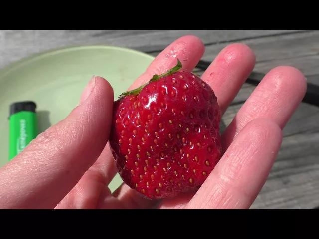 Ягоды сорта крупные, весом от 20 до 30 грамм, округло-конической формы, иногда гребневидные, без шейки. Кожица насыщенного ярко-красного цвета, при полном созревании становится темно-красной. Мякоть красная, сочная, мясистая и достаточно плотная, что позволяет ягодам хорошо переносить транспортировку и краткосрочное хранение без потери вкусовых качеств. Вкус ягод многогранный, очень сладкий с тонкой кислинкой, которая подчеркивает сладость. Содержание сахара в плодах достигает 10%, а также ягоды обладают ярко выраженным земляничным ароматом.