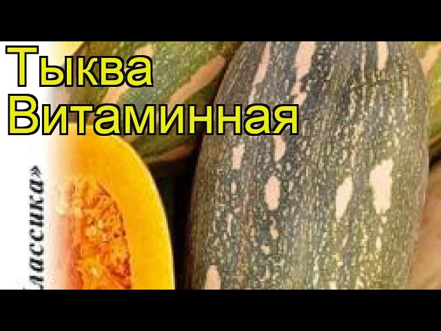 Тыква Витаминная — позднеспелый крупноплодный сорт с вегетационным периодом от 110 до 130 дней. Растение характеризуется длинно-плетистым типом с главным стеблем длиной до 6-6,5 метров, густой листвой и хорошо развитой корневой системой. Для успешного роста требуется много свободного пространства, поэтому загущать посадку более чем 4 растения на квадратный метр не рекомендуется. Тыква предпочитает солнечные участки с питательными, слабокислыми почвами и умеренной влажностью, а посев следует начинать после прогрева грунта до температуры не ниже +15°C. Растение чувствительно к заморозкам, но обладает хорошей устойчивостью к засухе и болезням. Плоды имеют овальную или слегка сплюснутую форму с гладкой тонкой кожурой насыщенного оранжевого цвета. Вес плодов варьируется от 4 до 8 килограммов, толщина мякоти достигает 10 см. Мякоть нежная, желтая, с выраженной сахаристостью и приятным ароматом. Высокое содержание сухих веществ (8-11%), витаминов (С, А, В1, В2), каротина, пектина, фолиевой кислоты, а также микро- и макроэлементов, таких как магний, калий и фосфор, делает этот сорт особенно полезным. Благодаря низкой калорийности и богатому витаминному составу тыква Витаминная широко используется в диетическом и детском питании. Для выращивания рекомендуется рыхление почвы, полив под корень и внесение минеральных удобрений, что способствует активному формированию завязей при высоких температурах. Посев семян можно проводить рассадным способом или непосредственно в открытый грунт, начиная с середины мая. Растение требует солнечного и защищенного от ветра места, а также плодородной, воздухопроницаемой почвы с нейтральной или слабокислой реакцией (pH 6-7). Урожайность достигает 3-5 кг с квадратного метра, а плоды долго сохраняют свои вкусовые качества и привлекательный внешний вид, что делает сорт универсальным для различных видов термообработки и употребления в свежем виде.