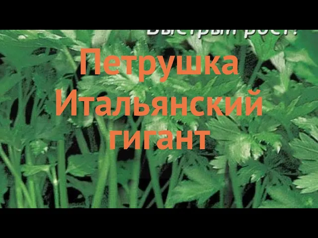 Петрушка сорта "Итальянский гигант" представляет собой высокоурожайное растение с сильной энергией роста и крупными, гладкими листьями насыщенного темно-зеленого цвета. Листья имеют трикутную форму, блестящие и не желтеют в течение всего периода вегетации, что обеспечивает привлекательный внешний вид и высокое качество продукции. Высота розетки достигает 60-70 см, в ней формируется 20-25 листьев, а общее растение вырастает от 30 до 60 см. Благодаря отличной регенерации, после среза листва быстро восстанавливается, сохраняя размер и внешний вид, что позволяет проводить минимум три сбора урожая за сезон.