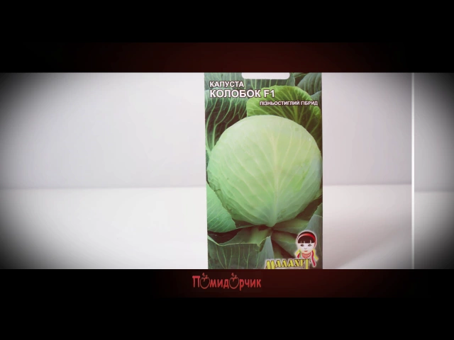 Колобок F1 — Позднеспелый гибрид. Образует товарные кочаны через 115-125 дней после высадки рассады. Кочаны округлой формы, очень высокой плотности, массой 2-3 кг, с короткой внутренней кочерыгой. Наружная окраска кочана зеленая, в разрезе — белая. Растение гибрида капусты Колобок F1 компактное. В поле не поражается слизистым бактериозом, серой и белой гнилями, устойчив к сосудистому бактериозу и фузариозному увяданию. Гибрид капусты Колобок F1 рекомендуется для длительного (8-10 месяцев) хранения. В период хранения не поражается точечным некрозом. Отличается высокой морфологической и биологической однородностью растений. Урожайность — 70-120 т/га. Плотность посадки растений (посева семян) гибрида позднеспелой капусты Колобок F1 составляет 35-40 тысяч на 1 га.