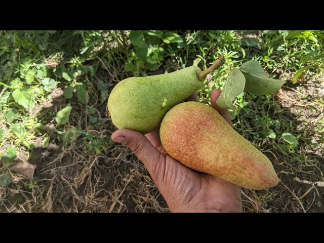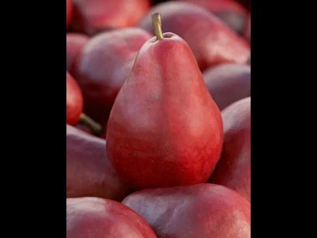 Плоды средней величины, короткогрушевидные, правильной формы, кожица сухая. В момент съемной зрелости плоды имеют бордовую окраску по всему плоду, при достижении потребительской зрелости окраска становится буровато-красной. Много подкожных точек. Плодоножка короткая, толстая.