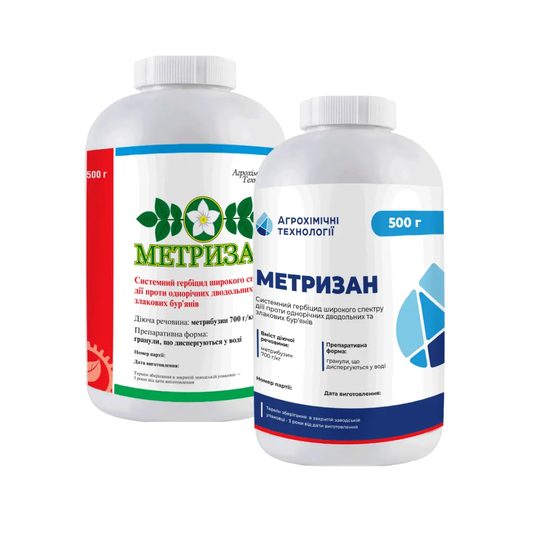Препарат называется Метризан, ВГ и представляет собой гербицид. Действующее вещество препарата — метрибузин в количестве 700 г на килограмм. Производитель препарата — ТОВ «КОМПАНІЯ АГРОХІМІЧНІ ТЕХНОЛОГІЇ», находящаяся в городе Киеве, Украина. Препарат применяется для картофеля с нормой расхода от 0,5 до 1,5 кг на гектар. Также его можно использовать для опрыскивания почвы до появления всходов культуры. Для розничной продажи населению препарат используется с нормой расхода 0,01 кг на сотку в 5 литрах воды. Расширенная сфера применения включает использование препарата в сельском хозяйстве на посевах сои с нормой расхода от 0,5 до 0,7 кг на гектар, однократно.