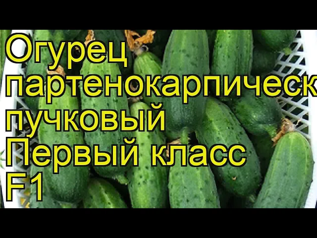 F1 Первый класс — урожайный партенокарпический пучковый корнишонный гибрид женского типа цветения. Предназначен для выращивания в тоннелях, открытом грунте, весенних теплицах. Характеризуется высокой скороспелостью, ограниченным ветвлением, массированной отдачей урожая, постоянным обилием зеленцов на плетях. Активно плодоносит в любых условиях выращивания. Зеленцы бугорчатые, белошипые, с редким опушением, длиной 7-11 см, плотные, хрустящие, отличаются отменным вкусом, хороши в засолке и консервировании. В узлах формируется от 2-3 до 4-5 завязей. Гибрид устойчив к мучнистой росе, оливковой пятнистости, вирусу обыкновенной огуречной мозаики, толерантен к ложной мучнистой росе.