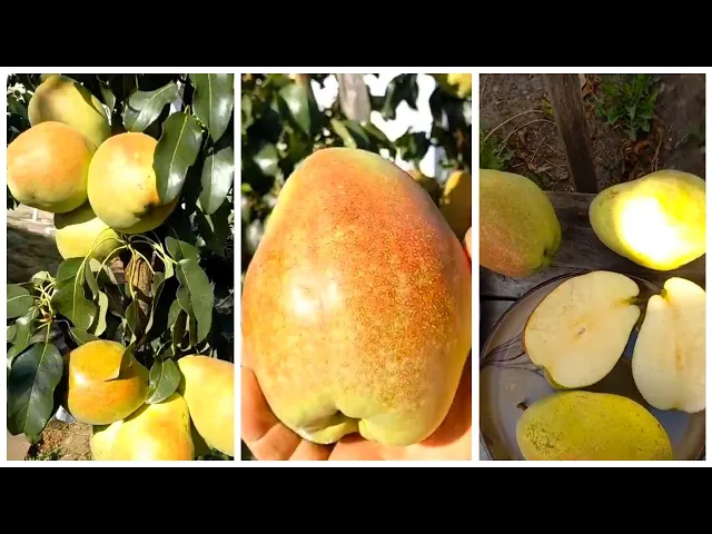 Плоды ниже средней величины, массой 70-80 г (максимально 150 г), грушевидной или усеченно-конической формы. Поверхность плода гладкая. Окраска при съеме и потреблении зеленовато-желтая. Кожица средней толщины, негрубая. Подкожные точки слабозаметные. Плодоножка прямая или слабо изогнута, средней длины и толщины, слабо одревесневшая, у основания плода расширена. Чашечка средняя, открытая или полуоткрытая. Блюдце маленькое или отсутствует, у чашечки сборчатость. Семенное гнездо луковичное, средней величины, расположено в центре плода. Семенные камеры закрытые.