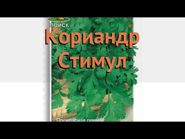 Кориандр сорта СТИМУЛ — это однолетнее растение из семейства сельдерейных, характеризующееся компактной и густооблиственной розеткой высотой 25-30 см. Листья крупные, темно-зеленые, глянцевые и сильно рассечённые, что придаёт растению привлекательный внешний вид и высокую ароматичность. Масса растения варьируется от 20 до 40 грамм, а урожайность зелени достигает 1,5-1,7 кг с квадратного метра. Сорт отличается засухоустойчивостью и быстрым отрастанием свежей зелени, что делает его удобным для выращивания в различных условиях, включая подоконники и дачные участки с солнечным освещением. СТИМУЛ — позднеспелый сорт с периодом от всходов до сбора зелени 35-45 дней, а созревание семян происходит через 105-120 дней. Растение предпочитает теплолюбивые и светолюбивые условия, требует обильного полива для получения сочной и качественной зелени. Стебель прямостоячий, голый, высотой до 40-70 см, с разветвлённой верхней частью. Листья имеют глубокорассечённую структуру с пильчатыми краями и длинными черешками, что обеспечивает удобство сбора и использования зелени. Кориандр СТИМУЛ широко применяется в кулинарии благодаря своим пряным и ароматным качествам. Молодые побеги и листья используют в свежем виде для приготовления салатов, а сушёные листья и зрелые семена служат пряной приправой к мясным, рыбным и овощным блюдам, а также добавляются в маринады, соусы и пряные смеси. Кроме того, растение обладает полезными свойствами: антисептическим, желчегонным и болеутоляющим эффектом, способствует улучшению пищеварения и очищению организма от шлаков.