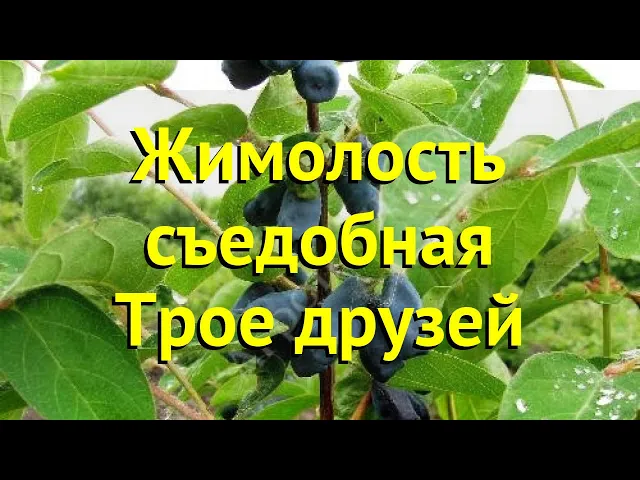 Трое друзей – среднерослый кустарник жимолости высотой 2–2,5 м с широкой, слегка раскидистой кроной. Побеги прямые, средней толщины, покрыты лёгкой пушистостью и окрашены розово‑белыми оттенками. Листья яйцевидные, светло‑зеленого цвета, гладкие и матовые, с небольшим опушением.