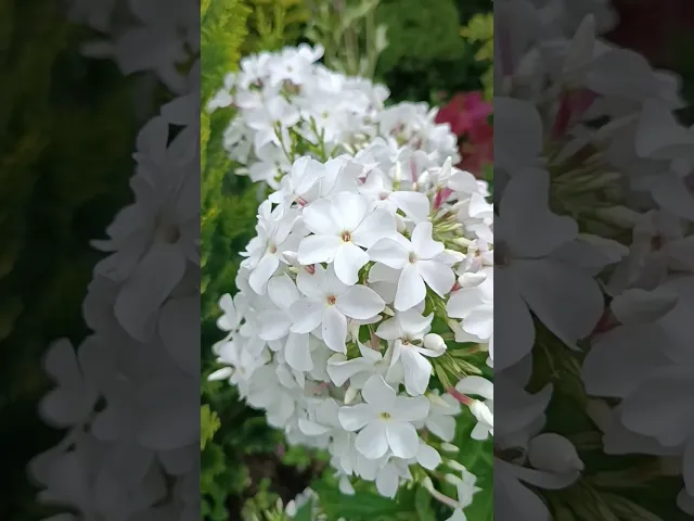 Флокс "Царевна-Лебедь" – это белоснежный сорт с ажурными соцветиями, достигающий высоты около 70 см. Цветки крупные, до 4,3 см в диаметре, имеют звездчатую форму и характерно загнутые края лепестков, что придаёт им изысканный вид.